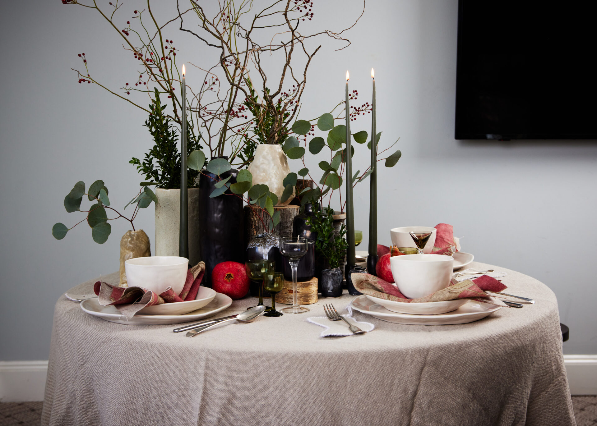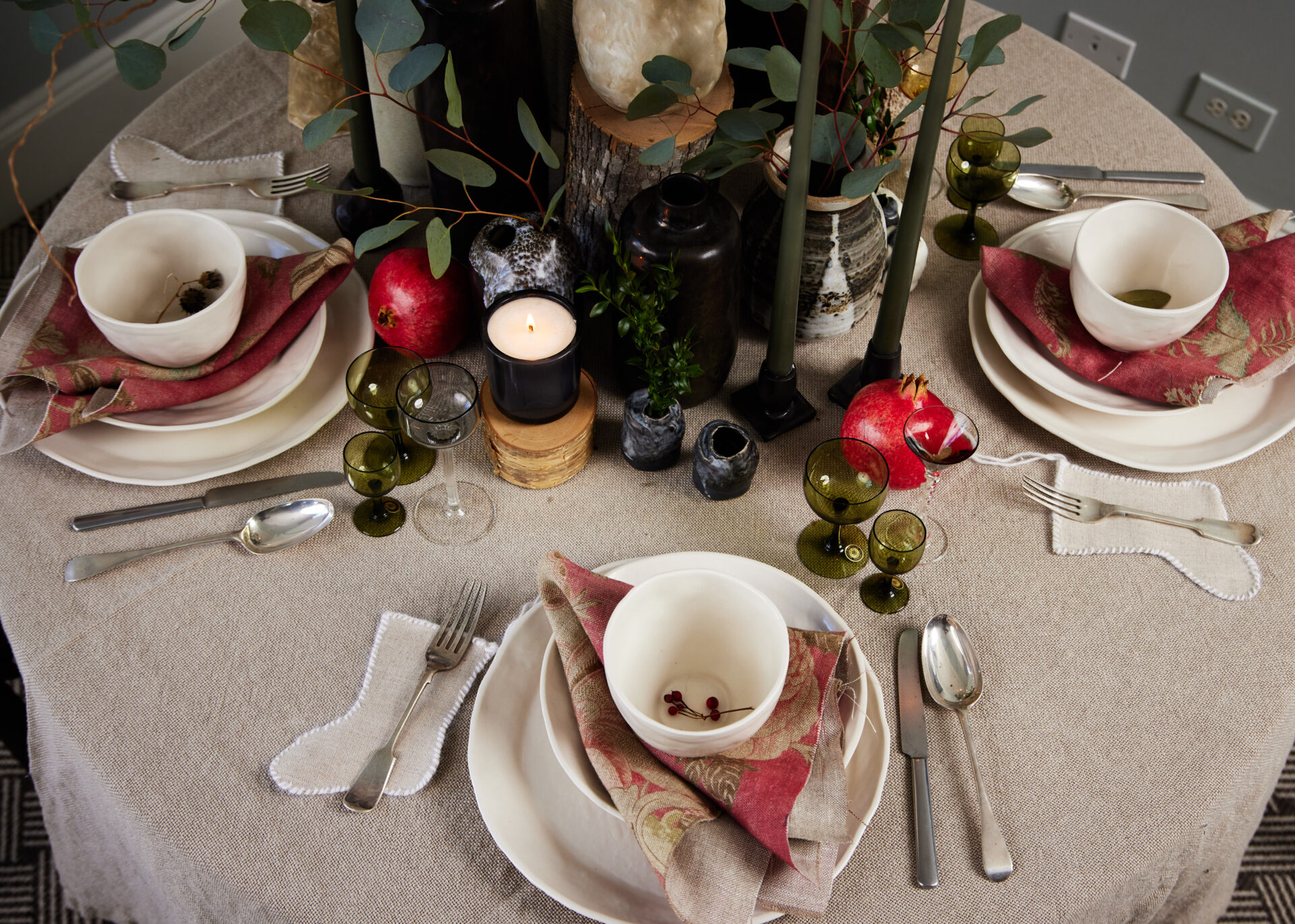 The inspiration really came from mixing Paul’s vintage pieces with my handmade ceramics in a way that felt warm, lived-in, and personal. We wanted a table that feels like home—soft linens, natural touches, pieces with a little history and heart. Nothing fussy or precious, just a collected mix that invites you to sit down, relax, and stay awhile.